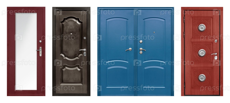 Набор моделей входных металлических дверей изолирован на белом фоне