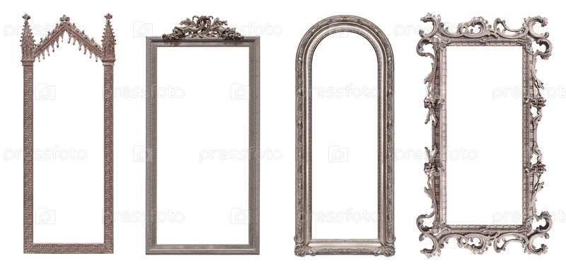 Набор серебряных рамок для картин, зеркал или фотографий, изолированных на белом фоне