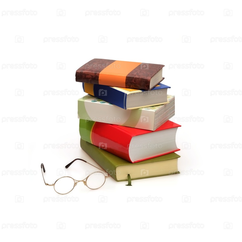 Куча книг в цветных обложках с белыми листами, изолированными на белом фоне