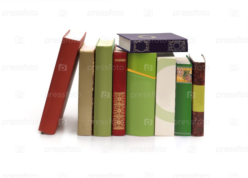 Куча книг в цветных обложках с белыми листами, изолированными на белом фоне
