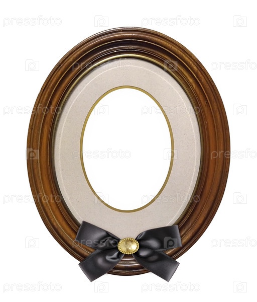 Деревянная овальная рама с черной траурной лентой для картин, зеркал или фотографий, изолированных на белом фоне