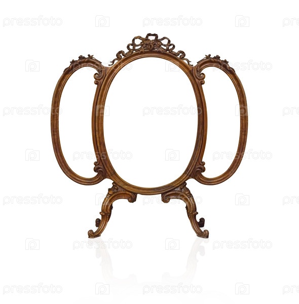 Тройная деревянная рама (триптих) для картин, зеркал или фотографий, изолированных на белом фоне
