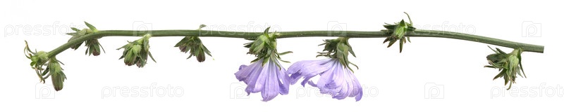 Цветящая ветвь цикории изолирована на белом фоне