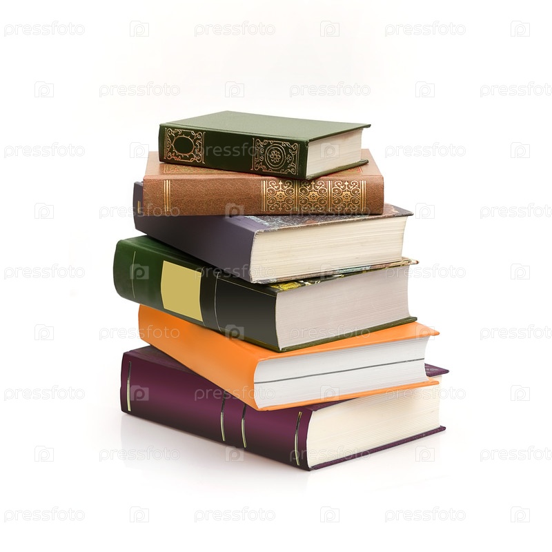 Куча книг в цветных обложках с белыми листами, изолированными на белом фоне