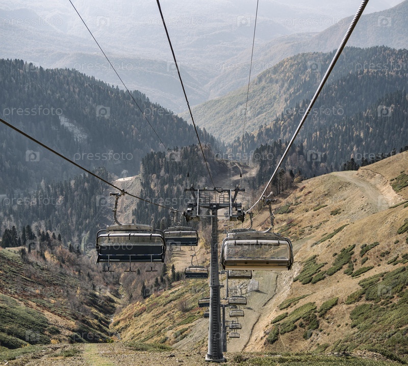 Лифты на осеннем фоне гор в горнолыжном курорте Роза Хутор