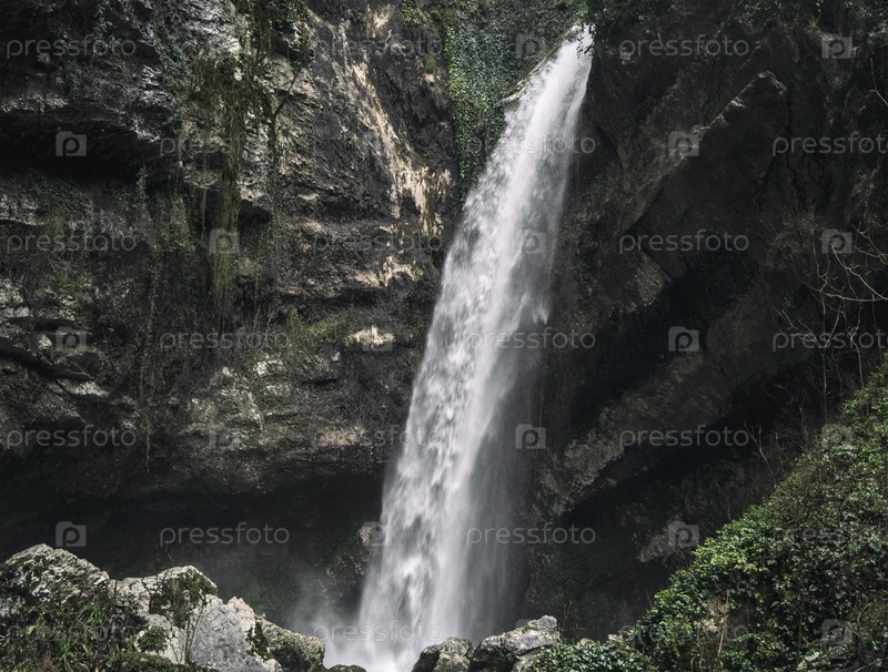 Водопад, протекающий из скалистой каменной стены
