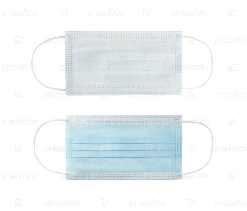 Передние и задние маски для лица изолированы на белом фоне