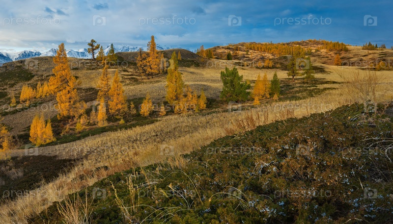 Россия. юг Западной Сибири. солнечный осенний день в горах Алтая. поздняя осень на северном хребте Чуй в самом сердце степи Курай