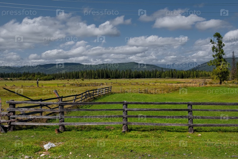Вид на поля в долине реки Иркут, огороженные деревянными заборами специальной зигзаговой структуры из бревен