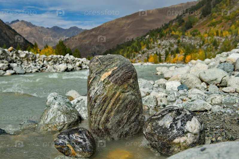 Кабардино-Балкария. Вид на живописные камни горной реки Шелды возле Эльбруса