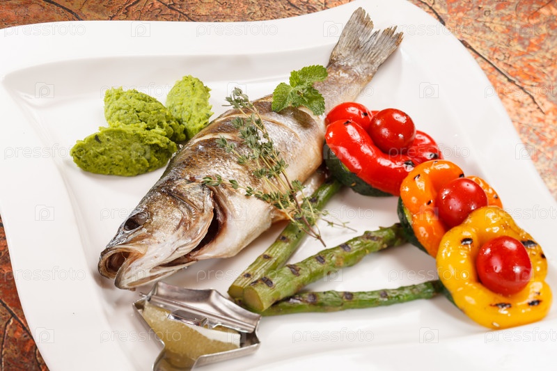 Жареная рыба со спаржей