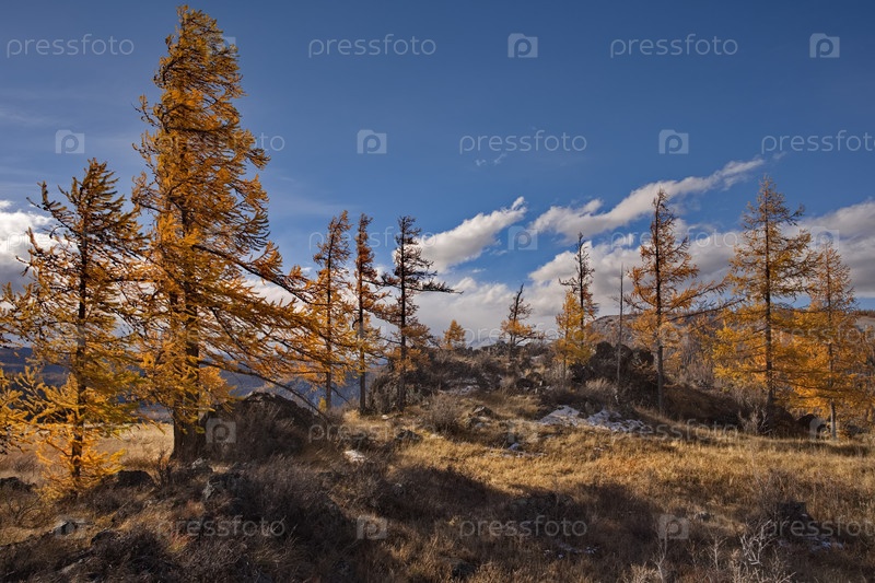Россия.Юг Западной Сибири, Алтайские горы.Начало осени на живописных скалистых участках в степной Курайской степи вдоль Чуйского тракта