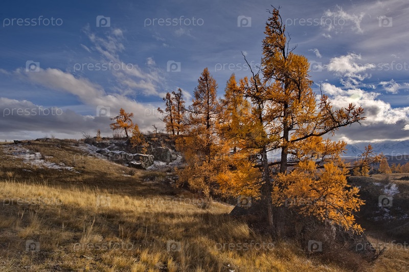Россия.Юг Западной Сибири, Алтайские горы.Начало осени на живописных скалистых участках в степной Курайской степи вдоль Чуйского тракта