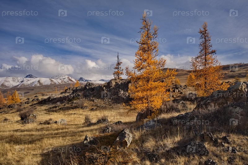 Россия.Юг Западной Сибири, Алтайские горы.Начало осени на живописных скалистых участках в степной Курайской степи вдоль Чуйского тракта