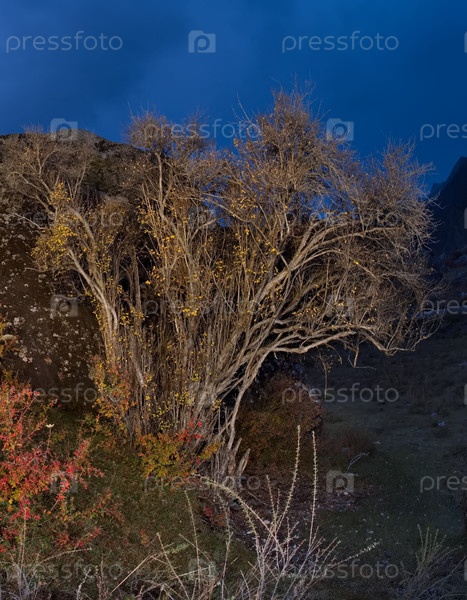 Юг Западной Сибири, Алтайские горы.Осенняя лунная ночь в каменной долине горной реки Катун недалеко от деревни Иния