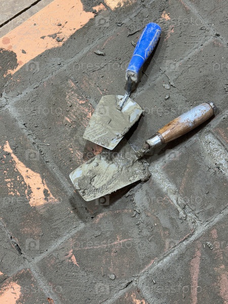 Два полотенца на кирпичной кладке основания отопительной плиты