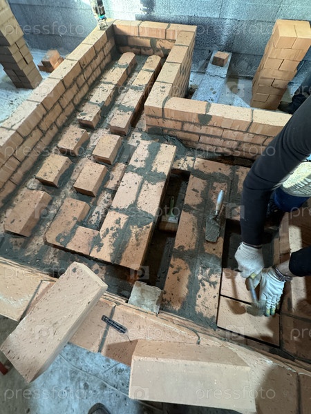 Оружие на работе, свежая кирпичная печь и зола для пожарных