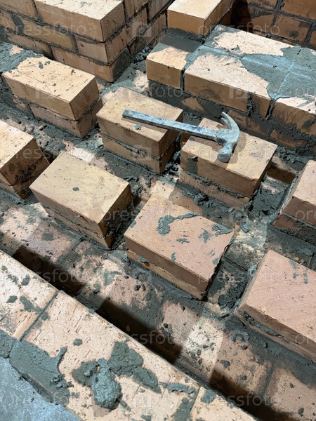 Свежие кирпичные печи для подогрева на скамейках.Вы можете увидеть контуры дымовых каналов.Закрой
