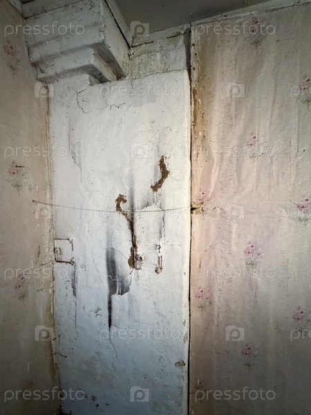 Старый обогреватель был отбелен известком, сзади трещины и следы сажи