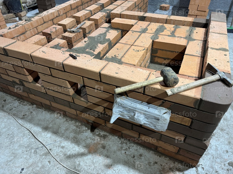 Свежие кирпичи из ямы нагревательной плиты и скамейки