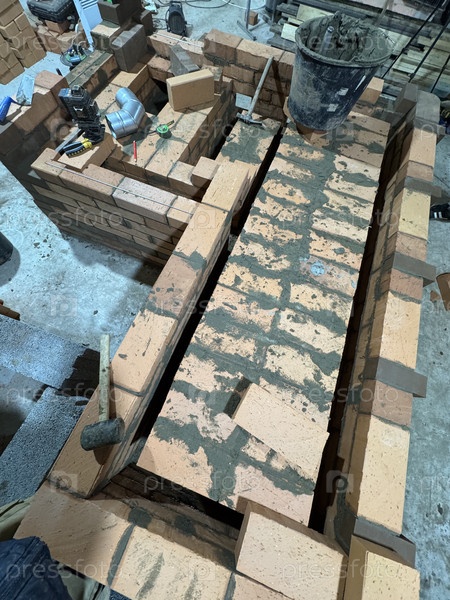 Свежие кирпичи из ямы нагревательной плиты и скамейки