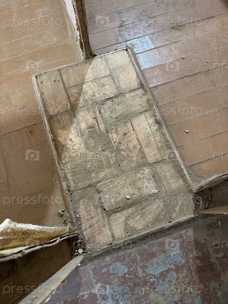 Кирпичная основа старой тепловой плиты между внутренними перегородками. высокоугольные снимки