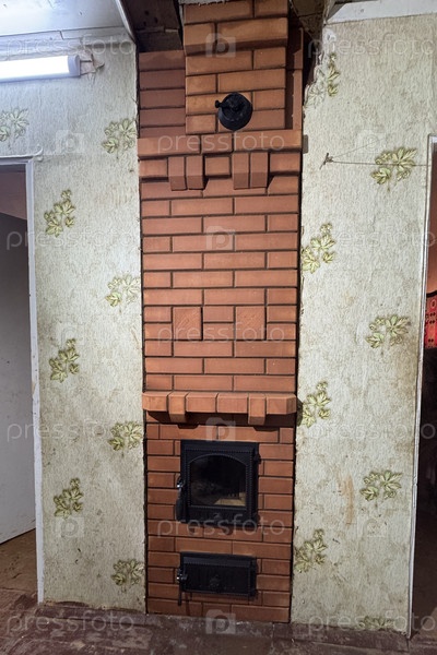 Видна кирпичная работа, коробка с огнем и пепельные двери. Строительство из плит