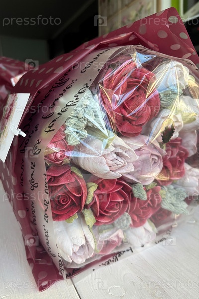 Букет 'Маршмелоу'. Цветы маршмелоу разных цветов близко друг к другу. Перед окном. Работа предпринимателя-маршмелоу