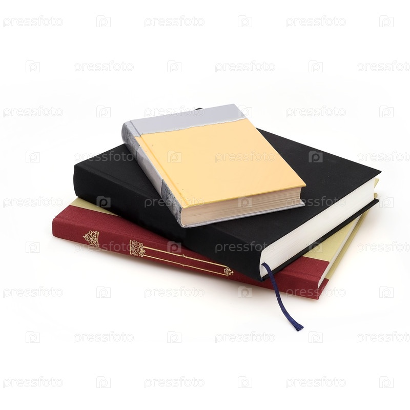 Куча книг в цветных обложках с белыми листами, изолированными на белом фоне