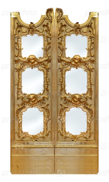 Модель золотой входной двери церкви (изолирована на белом фоне)