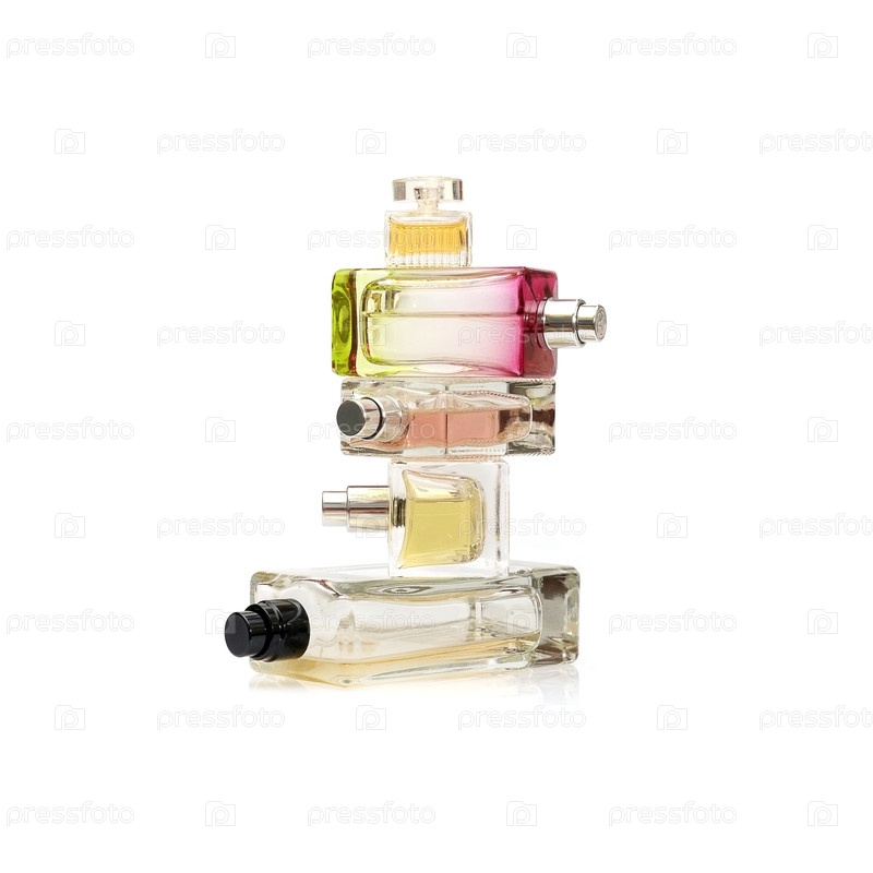 Запас бутылок парфюмерии изолирован на белом фоне