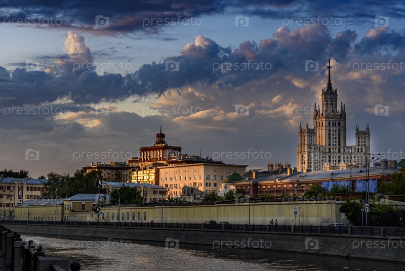 Потрясающий пейзаж Москвы под зрелищными облаками заката