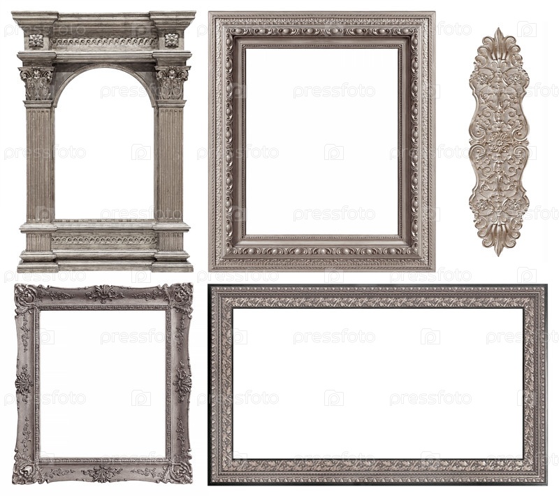 Серебряные рамы для картин, зеркал или фотографий, изолированных на белом фоне (набор изображений)