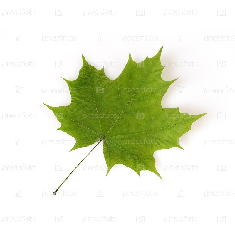 Зеленый кленовый лист на изолированном белом фоне