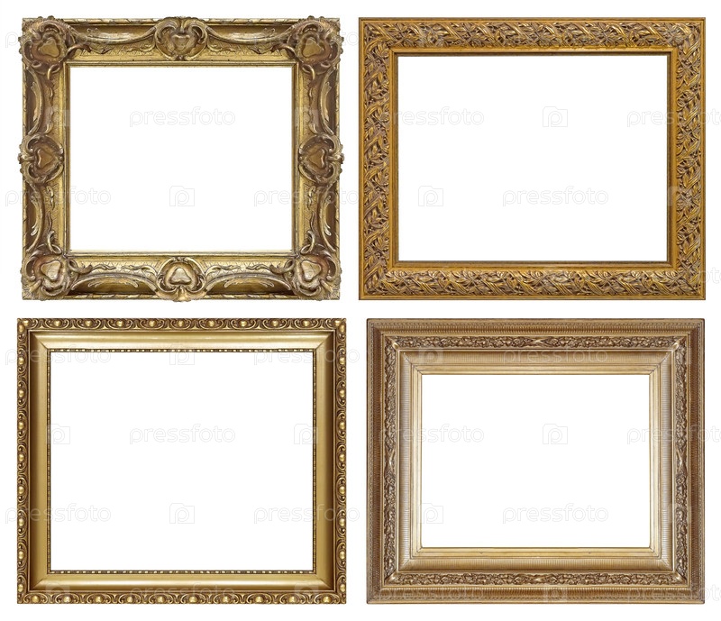 Золотые рамы для картин, зеркал или фотографий, изолированных на белом фоне (множество изображений)