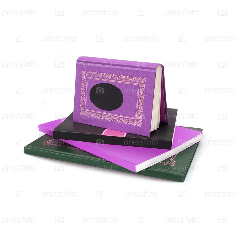 Куча книг в цветных обложках с белыми листами, изолированными на белом фоне