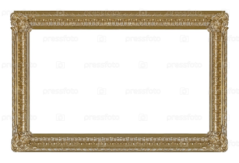Панорамная золотая рама для картин, зеркал или фотографий, изолированных на белом фоне