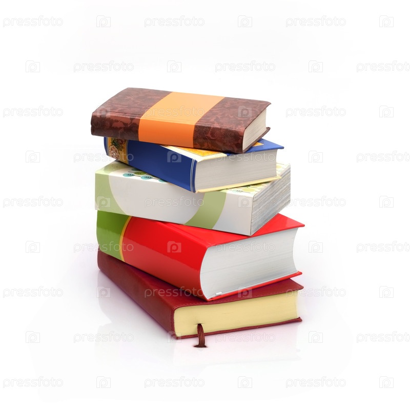 Куча книг в цветных обложках с белыми листами, изолированными на белом фоне