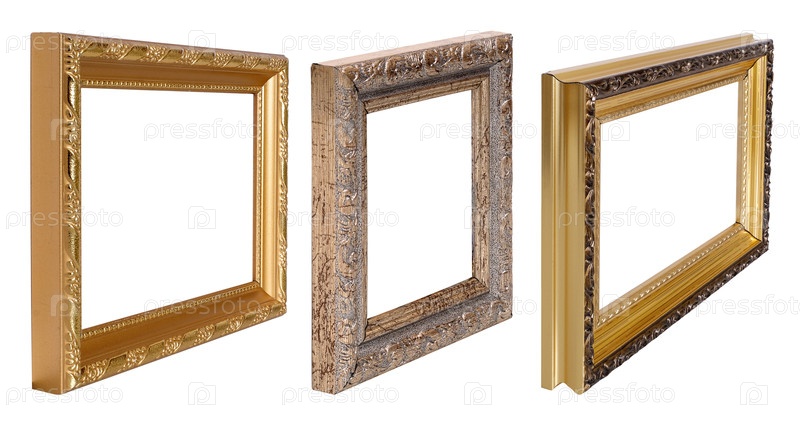 Золотая рама для картин, зеркал или фотографий изолирована на белом фоне