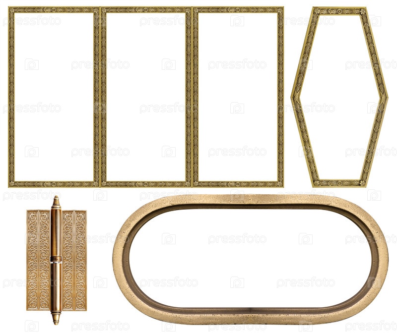 Набор золотых рамок для картин, зеркал или фотографий, изолированных на белом фоне