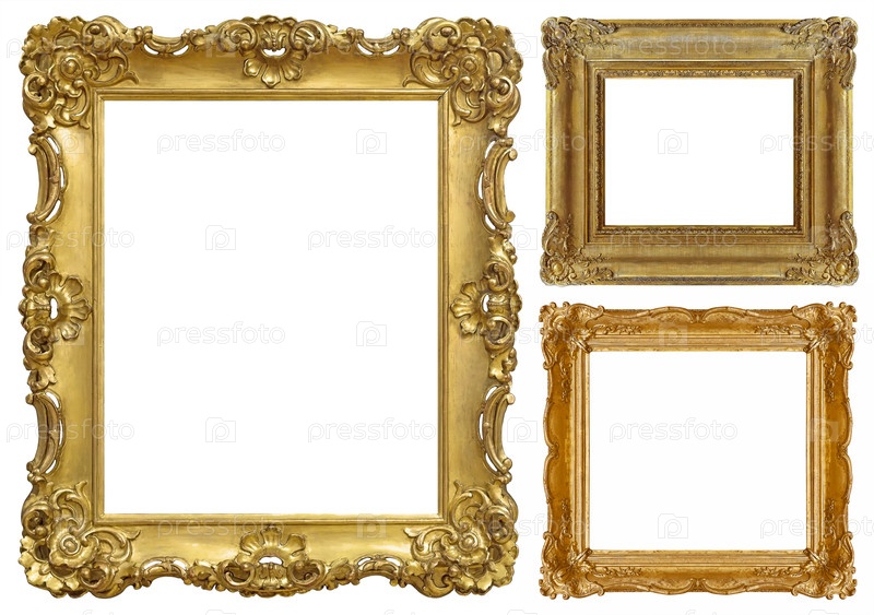 Золотые рамы для картин, зеркал или фотографий, изолированных на белом фоне (множество изображений)
