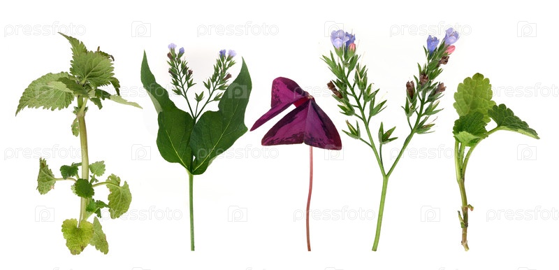 Зеленая трава с изолированными цветами на белом фоне
