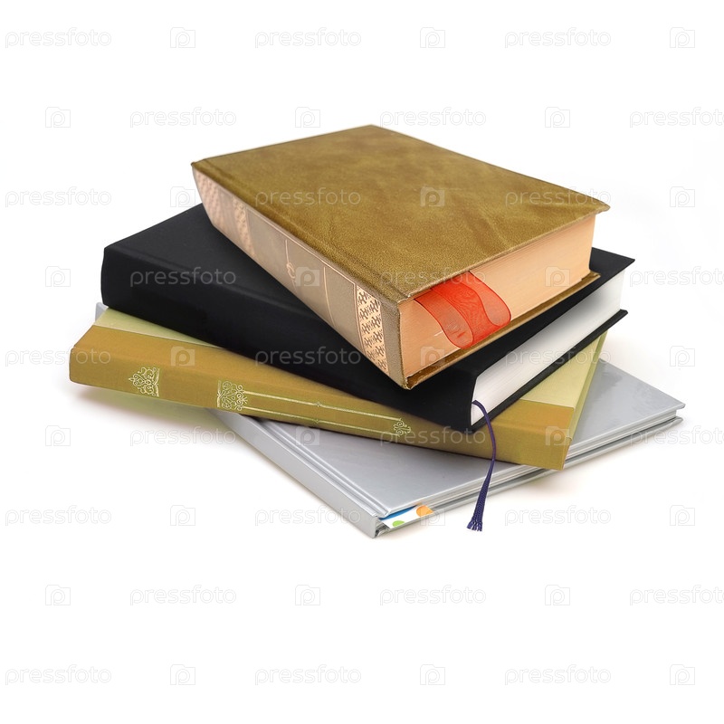 Куча книг в цветных обложках с белыми листами, изолированными на белом фоне
