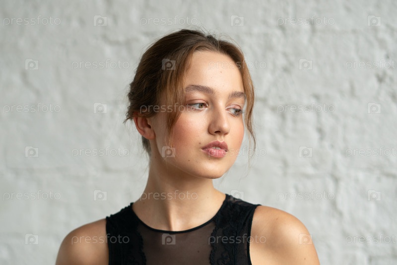 Портрет красивой молодой женщины с короткими волосами в студии