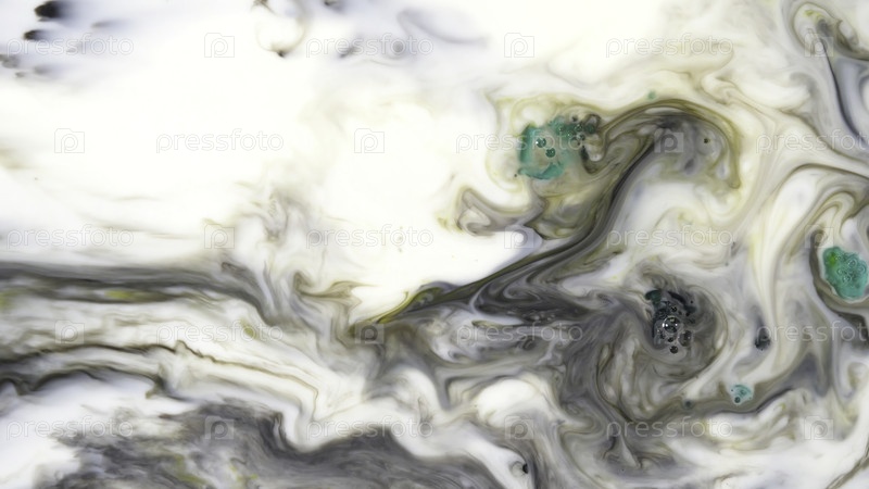 Красочные краски, жидкие мыльные коробки, смешанные с белым веществом.Красивый фон движения с чернилами, мылом и молоком