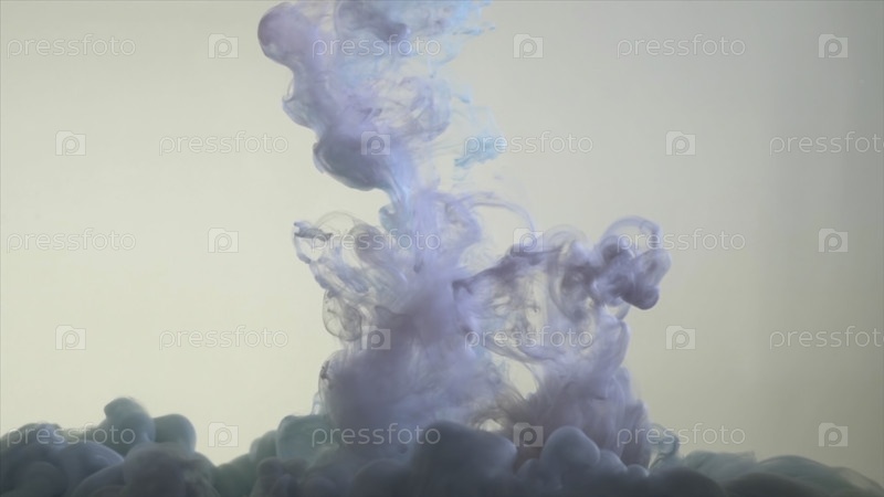 Чернила вращаются в воде. Волны и дым разных цветов на белом фоне. Абстрактный синий и красный дым на белом фоне p