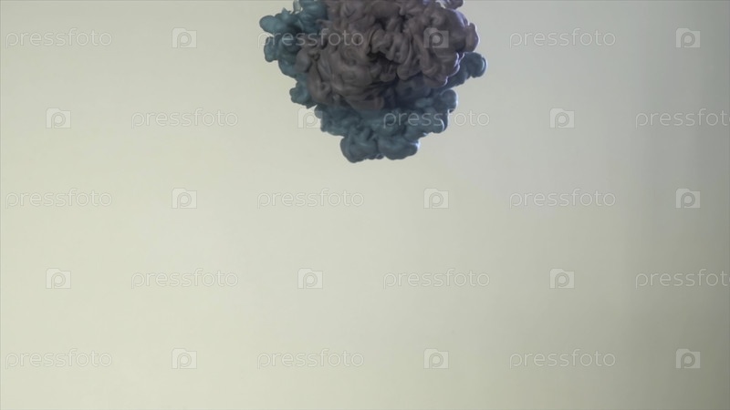 Чернила вращаются в воде. Волны и дым разных цветов на белом фоне. Абстрактный синий и красный дым на белом фоне