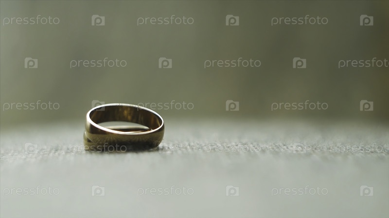Одно золотое обручальное кольцо перевернуто на другое. видео. обручальные кольца. два хорошо использованных золотых обручальных кольца на сером фоне. свадебная жемчужина