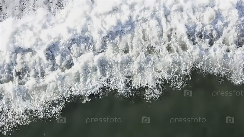 Вид сверху на морские волны. Морские волны и пену из круизного судна. Сток. Текстура красивой волны в океане: гладкая поверхность морской воды, отражение солнца от океана