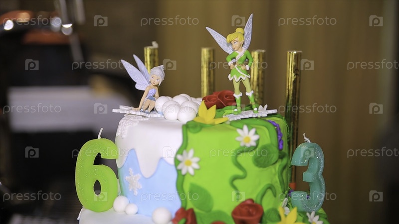 Зелёный торт с феями. Большой торт на день рождения. Рождественский торт со свечами HD